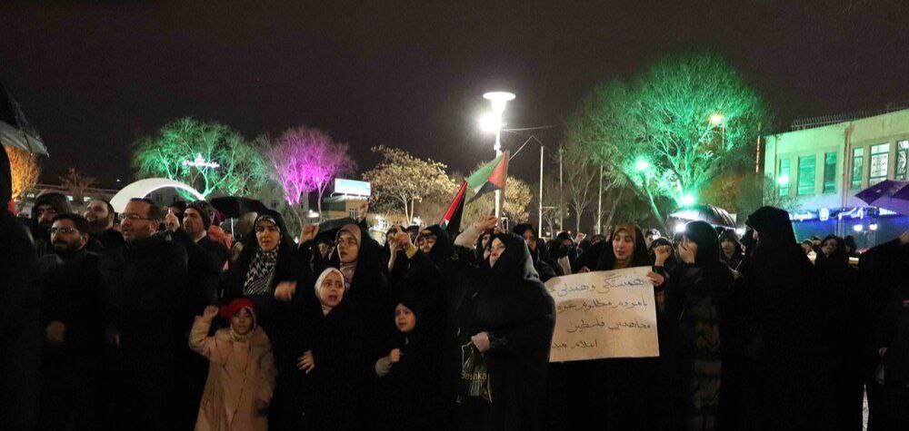 همچنین تجمعکنندگان با در دست داشتن پلاکاردهایی حاوی شعارهای «غزه شده کربلا مهدی بیا مهدی بر تداوم خشم و انزجار خود از این رژیم تأکید کردند.