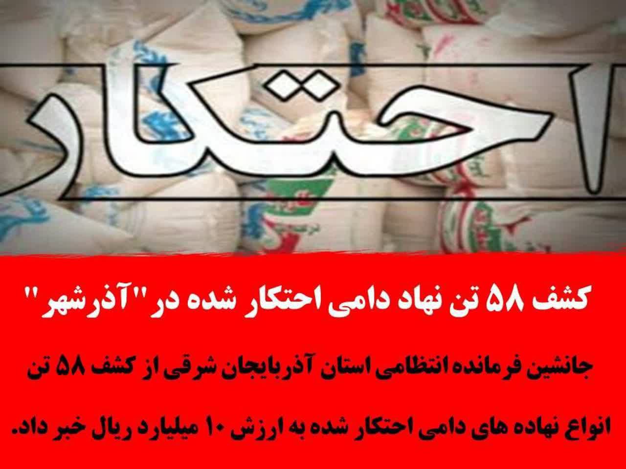 کشف ۵۸ تن نهاد دامی احتکار شده در “آذرشهر”