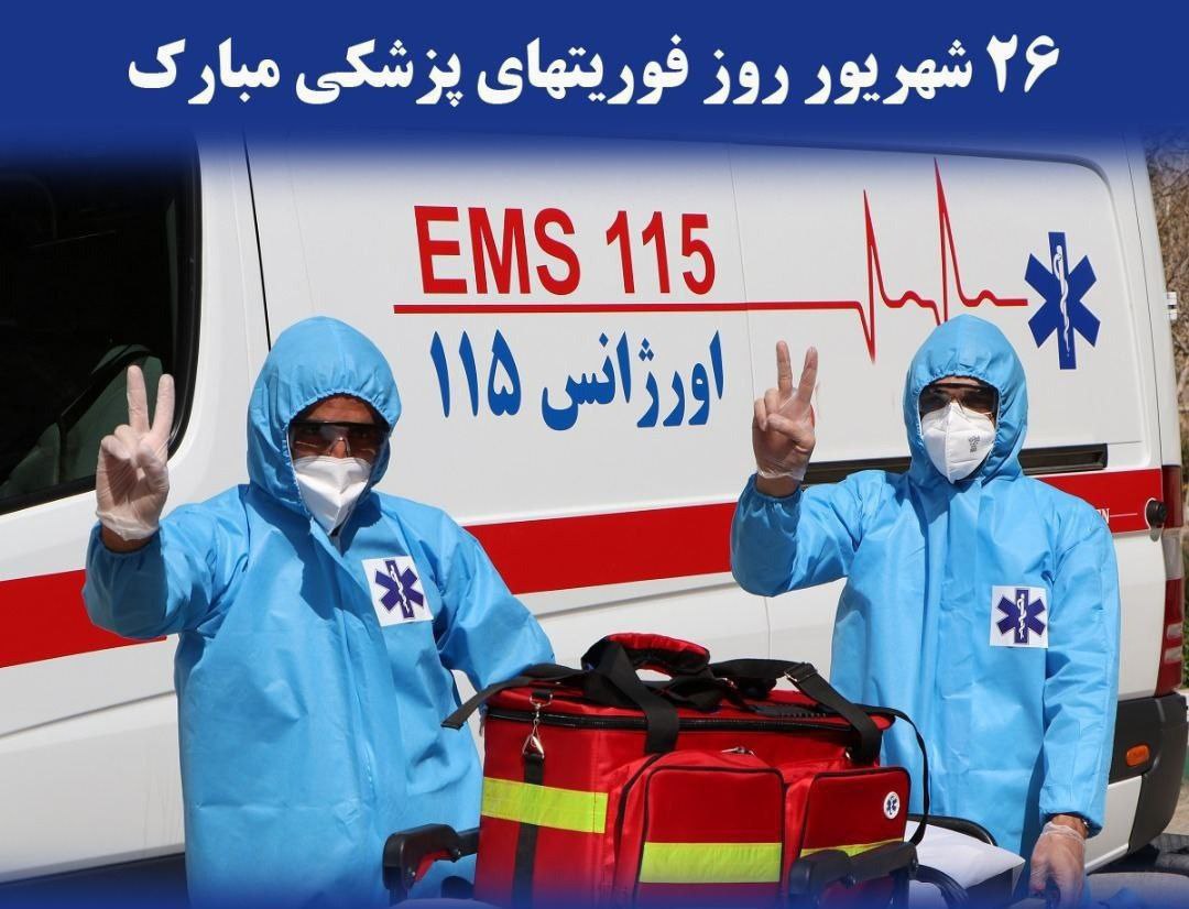 اینجانبان فرارسیدن بیست و ششم شهریور روز فوریتهای پزشکی و اورژانس را به شما همیشه بیدار وتلاش گران سازمان اورژانس تبریک و تهنیت عرض می نماییم و از خدای مهربان برای همگان سلامتی و توفیق خدمت به همنوعان نیازمند را خواهانیم.